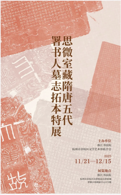此外,配套展览“思微室藏隋唐五代署书人墓志拓本特展”也同步在浙江书法院展出。此次展览不仅是对思微室主人朱关田先生收藏成果的选萃展示,更是对隋唐五代书法艺术的一次深情致敬,既展现了隋唐五代时期写手与刻手的精湛技艺,又反映了当时社会的文化风貌与审美趣向,为书法研究者们提供了宝贵的第一手资料。