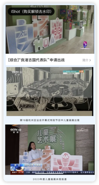 展览辐射:自2022年来,依托良渚博物院社会教育计划与外展计划,在良渚博物院公共区域打造“良渚童 huà”主题儿童画展2个,与中国妇女儿童博物馆、山西考古博物馆、浙江图书馆分别合作儿童美育展览,并将儿童作品在“良渚论坛”、“何以文明”良渚文化全球巡展中展示。其中,展览严格遵循儿童视角的展陈逻辑,部分展览设置互动墙、触摸博物馆等互动区域,并配套开展儿童导览活动、手工社教活动,形成 “儿童影响儿童” 的二次传播效应。