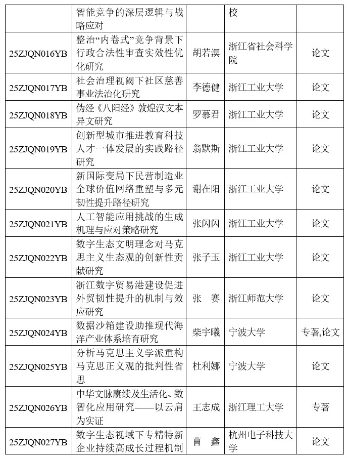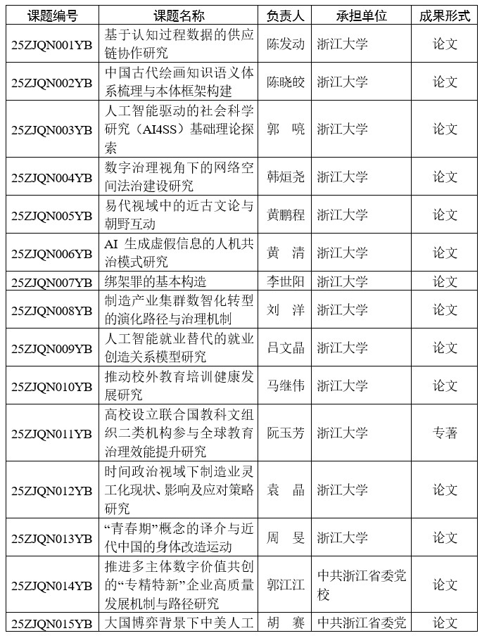 关于公布2025年浙江省哲学社会科学规划(之江青年)课题立项名单的通知